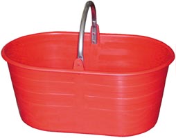 In plastica colore rosso. Manico in ferro. Dim.cm.51x31x21.