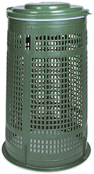 Trespoli spazzatura CON COPERCHIO montato, colore verde o blu. In polietilene grigio. Dimensioni: sommit? d.cm.38, base d.cm.50, altezza cm.80. Coperchio d.cm.38.