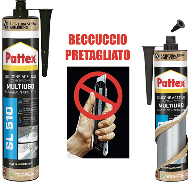 Silicone acetico multiuso. Resiste alle muffe, ai raggi UV, al tempo e all'invecchiamento. NUOVA GENERAZIONE di cartucce in CARTONE 100% RICICLABILE. Sicurezza e rapidit? di utilizzo: apertura semplificata SENZA TAGLIERINO con beccuccio pretagliato e pronto ad estrudere, richiudibile con tappino dopo l'uso. NORMALE UTILIZZO CON PISTOLE PER SILICONE.