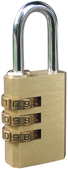 Corpo in ottone. Arco in acciaio cromato. Lucchetti da mm.20 e mm.30 combinatore a 3 cifre. Lucchetti da mm.40 combinatore a 4 cifre.