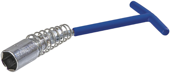 Impugnatura a T gommata. Bussola esagonale mm.21. In acciaio al cromo vanadio di alta qualit?. Perno mobile che consente di aumentare la forza di serraggio. Confezione in blister.