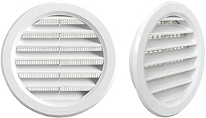 Griglie areazione da incasso universali con rete antinsetti. In plastica colore bianco.