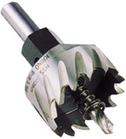 Frese perforatrici a tazza in HSS con alberino per forare lamiere in acciaio, ferro e materiali metallici. Si consiglia un buon lubrorefrigerante.