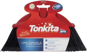 Scopa alta per interni ed esterni. Setole lunghe e molto inclinate, semi-rigide per pulire superfici ruvide e bagnate fitte e piumate per raccogliere la polvere in esterni. Senza manico.