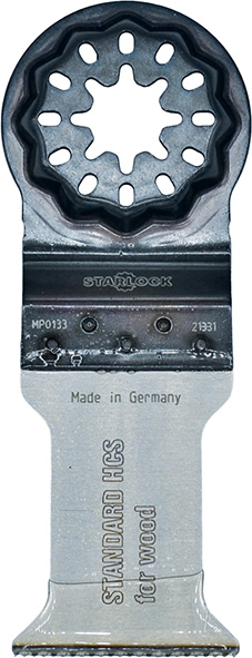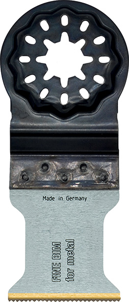 Lama in metallo duro con rivestimento TIN. Extra lunga durata. Metalli ferrosi alto spessore, acciaio inox, tubi in rame, viti, mattoni, muro, pannelli in fibra di cemento, laminati, legno duro, compensato. FEIN 63502236210.