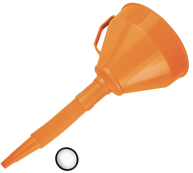 Imbuto in polipropilene. Gambo lungo flessibile mm.180+250. Lunghezza totale mm.430. Filtro rimovibile. Per travasare liquidi in punti difficili da raggiungere. Bordo alto per evitare traboccamenti e proteggere dagli schizzi.