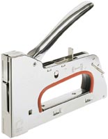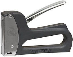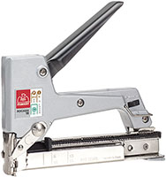 Batteria ricaricabile al litio 3,7V. Utilizza punti FOREST 105-108-110-112-114 e chiodini con testa M15. Leggera e compatta. Il frontale in acciaio temperato assicura stabilit? in fase di sparo. Corpo in nylon rinforzato. Sicura grilletto contro lo sparo accidentale. Regolatore della potenza di sparo. Luce LED. Confezione in scatola di cartone.