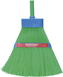 Filamenti in PPL ondulati riciclabili. Colore verde. Modello brevettato. La cucitura con guaina in plastica a punti metallici ed il materiale impiegato garantiscono una doppia durata rispetto le normali scope, mantenendo inalterata la flessibilit? e la robustezza. Completa di manico lungh.cm.110 fissato al corpo della scopa mediante reggetta in ferro e punzonata a chiodi.