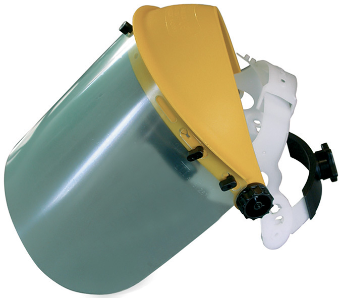 Visiera protettiva regolabile in policarbonato trasparente. Schermo sollevabile. Fornita con pellicola protettiva. Dotata di spugna protettiva a celle chiuse tra schermo e struttura. Leggera 160gr. Conforme alla norma EN166:2001. Made in Italy.