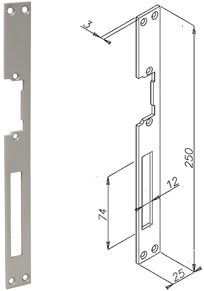 Per serrature scrocco e catenaccio. Acciaio verniciato grigio. Mano reversibile.