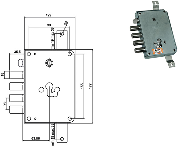 SERRATURE MOIA RCE664/280RF REVERSIBILE