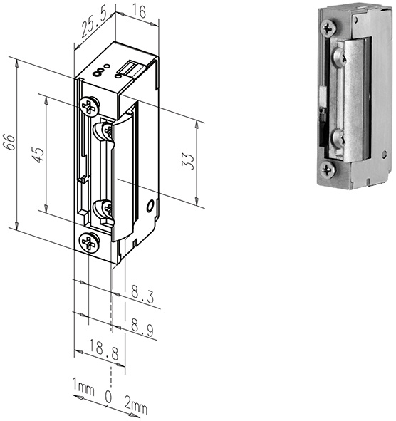Incontro elettrico a sganciamento LIMITATO con funzione contatto a riposo (funzione antipanico, l'incontro rimane aperto in assenza di corrente). Scrocco RADIALE con regolazione dell'entrata. Compatibile con tutte le comuni serrature da incasso. Da abbinare a frontali ns.cod.836822 e cod.836823.