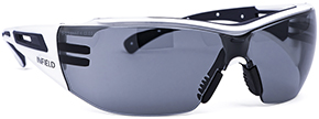 Design sportivo, per visi di forma sottile. Lente grigia AF antiappannante, in policarbonato, trattamento antigraffio e antistatico. Protezione UV 100%. Campo visivo illimitato. Montatura colore BIANCO/VIOLA. Profilo in gomma supplementare. Morbido appoggio sul naso. Stanghette confortevoli. Peso ridotto. CE certificati DPI EN166-EN170.
