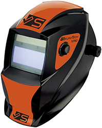 Area visiva mm.92x42. Con 2 sensori per l'oscuramento. Supporto testa professionale. Stato luminoso 4 DIN. Stato oscuro 9-13 DIN. Transizione chiaro/scuro 0,04 ms. Tempo oscuramento: 1/25000S. Transizione scuro/chiaro 0,1-1,0s. Classe ottica 1/2/1/2. Saldatura TIG >= 10A. Protezione UV/IR:DIN 16. Peso 490gr.