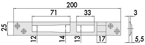 Contropiastra piana in acciaio inox mm.25x3 con pattino in nylon. Per serrature art.16205, 16207, 16215, 16217, 16225, 16227, 16425, 16435, 16445, 16525, 16625, 16725.