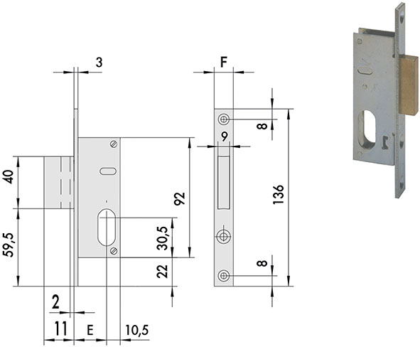 Serrature per montanti. 1 mandata. Solo catenaccio. Frontale zincato. Predisposte per cilindro ovale. Contropiastra non compresa.