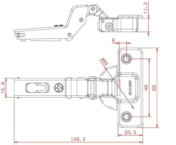 Cerniere serie 200, applicazione standard. In acciaio nichelato. Chiusura automatica. Regolazione laterale, frontale, verticale. APERTURA 110?. Profondit? mm.11. Diametro mm.35. Spessore anta da m.16 a 26.
