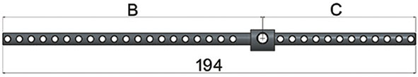Barra di allungamento XL mm.194 in acciaio inox. UNIVERSALE: con questa barra si possono comporre tutte le lunghezze, da mm.31-31 a un massimo di mm.121-76, con una lunghezza totale del cilindro di mm.200. Da utilizzare per lato B= da mm.76 a 121 e lato C= da mm.31 a 76.
