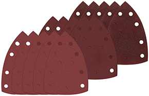 Carta abrasiva in fogli con fissaggio a strappo mm.102x151. Serie pz.15 composto da: pz.5 grana 60, pz.5 grana 120, pz.5 grana 180. Per levigatrici orbitali SKIL ns.cod.274878.
