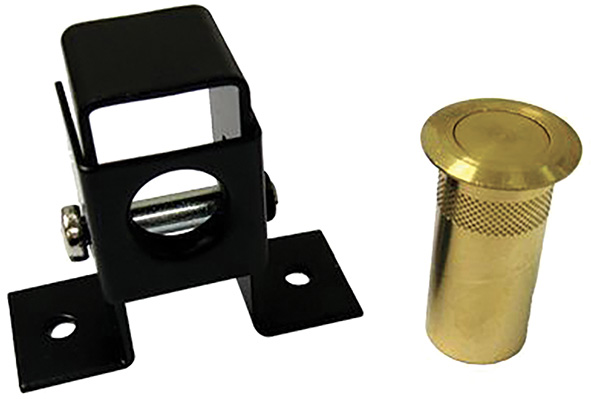 Kit composto da 1 cavallotto regolabile per catenacci verticale e 1 boccola a pavimento con coperchio a molla foro d.mm.18 profondit? mm.30. Colore NERO. Da abbinare a tutte le minisbarre verticali MUL-T-LOCK.