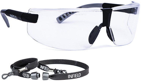 Protezione UV 100%. Copertura della zona superiore degli occhi. Lente in policarbonato asferica per evitare fastidiose distorsioni ai margini del campo visivo. Stanghette regolabili in lunghezza. Antigraffio. Cordino in dotazione.