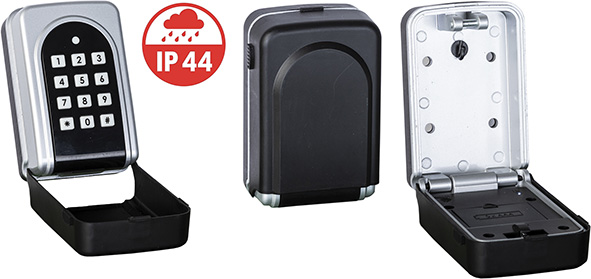 Mini cassaforte per chiavi. In alluminio. Elettronica digitale con combinazione programmabile 4-8 cifre. Tastiera retroilluminata. Cappuccio protettivo. Illuminazione interna a led all'apertura dello sportello. Funziona con 3 batterie 1,5V AAA (non inluse). Mini porta USB per alimentazione esterna in caso di batterie scariche. Fissaggio a parete. Per interno ed esterno. IP44. Peso Kg.0,65.