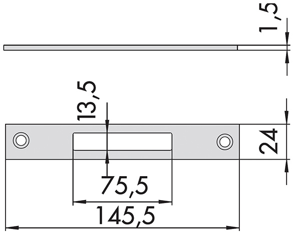 Contropiastra piana in acciaio inox mm.24x1,5. Per serrature art.19000, 49000.