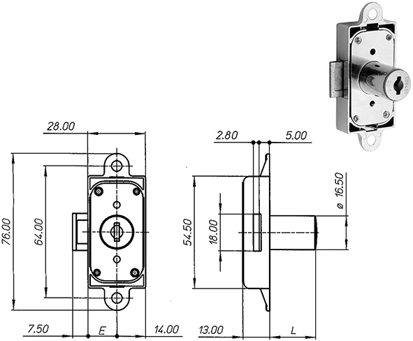 Serratura per antine da applicare ad aste rotanti. Cilindro d.mm.16,5. Scatola in zama nichelata. Rotazione 90?+90? (2 uscite chiave). 2 chiavi in dotazione. Chiave grezza ricambio ns.cod.849522. Possibilit? di avere chiave MAESTRA ns.cod.849523. Modificabili in KA con ns.cod.849180-81. Senza aste ns.cod.849354/55. Senza accessori ns.cod.849359/61.