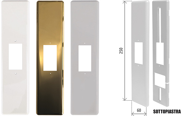 Placche in ABS con SOTTOPIASTRA di premontaggio. UNIVERSALI. Compatibili con pi? avvolgitori e diversi tipi di interasse da mm.95 a 215. Design moderno e raffinato, senza viti di fissaggio a vista. Applicazione rapida e sicura. Larghezza placca mm.60. Altezza placca mm.250. Da abbinare a supporto GEWISS cod.309981 e pulsante cod.309982, oppure supporto BT cod.309968 e pulsante cod.309969.