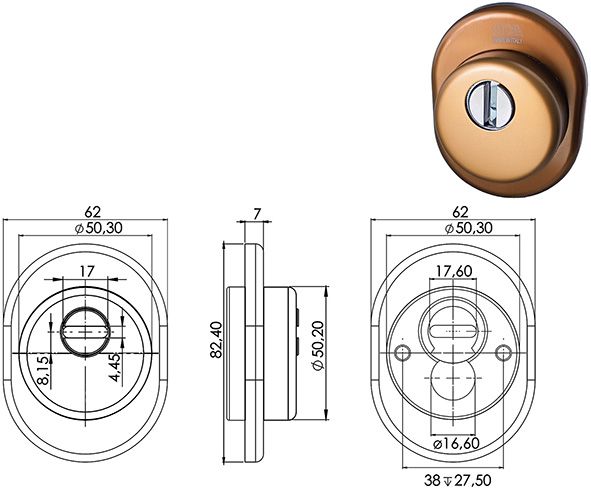 Kit protezione cilindro anti-tubo in acciaio carbonitrurato con un grado di resistenza maggiore di 60 Rockwell. Interasse STANDARD d.mm.50. In dotazione: protezione, cilindro, cover, mostrina esterna con supporto in plastica, 2 viti.