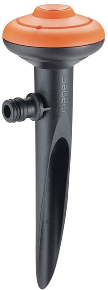 Irrigatore statico con picchetto dalla forma speciale, studiata per garantire la massima stabilit? nel terreno. Annaffia con uniformit? un'area circolare tutto attorno, getto simile a una pioggia naturale. Attacco standard Quick-Click. Area massima irrigata 54 mq. Max portata d'acqua 34 lt/min - 4 bar.