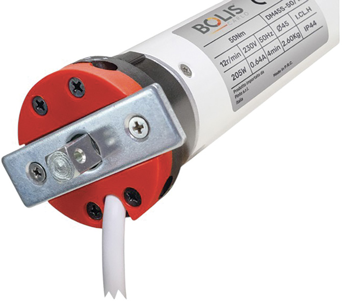 Fine corsa motore meccanico, senza manovra di soccorso. Diametro mm.45, completi di adattatore per rullo ottagonale d.mm.60, supporto standard per coppiglia, chiavetta di regolazione. Lunghezza cavo mt.2,5. IP44.