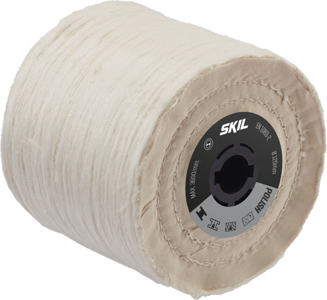 Spazzola in cotone per lavori di lucidatura senza sforzo e di eccellente qualit?. Rimuove piccoli graffi sul metallo verniciato, assicura una brillantezza eccezionale a mattonelle in marmo, legno verniciato e metalli verniciati o non verniciati. Spazzola d.mm.120x100x19. Velocit? 900-3600/rpm. Da utilizzare con il rinnovatore Skil 7800AA (ns.cod.275410).