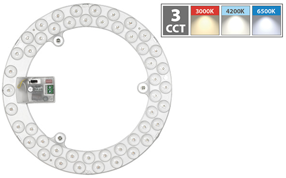 Lampade modulo con magneti. 25000h. 3CCT selettore temperatura di colore TRI-WHITE: 3000K / 4200K / 6500K. Tensione 200-240V. Gradi diffusione 180?. Doppia opzione di installazione con viti di fissaggio o con magneti. Da collegare direttamente ai cavi di alimentazione. IP20.