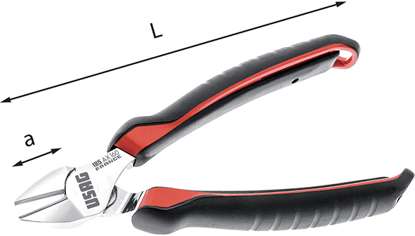 Tronchesi a tagliente diagonale. Testa allungata ed appuntita. Taglio pulito e preciso sulle punte dei taglienti. Taglienti temprati ad induzione. Fulcro pi? vicino al tagliente per una riduzione dello sforzo in fase di taglio. Cerniera aperta con articolazione forgiata. Impugnature ergonomiche bimateriali. Asole di aggancio alle estremit? per sistemi anticaduta. Esecuzione cromata. ISO 5749.