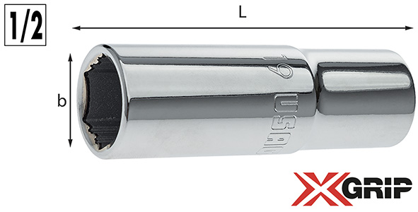 Chiavi a bussola femmina LUNGHE bocca esagonale con profilo speciale XGRIP: presa perfetta anche su esagoni molto danneggiati. Pu? svitare dadi e viti danneggiati fino all'80%, sviluppando il 66% di coppia in pi? rispetto ad una tradizionale 235 EN. Acciaio al Cromo Vanadio con finitura lucida. ISO 2725-1.