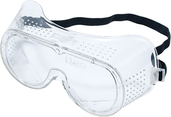 Occhiali a mascherina. Montatura in PVC morbido aerato. Lente in policarbonato antiurto. DPI CE EN166:2001.