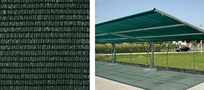 Ombreggiante fitto e frangivista, colore verde scuro. Con cimosa rinforzata in PES. Usato come ombreggiante o schermante per recinzioni, campi scuola equitazione, posti di ritrovo, parcheggi.