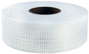 Nastro a rete adesivo in fibra di vetro. Colore bianco. Si applica in modo rapido e facile sulle giunture dei pannelli in cartongesso. Adatto per riparare fessure e buchi nei muri.