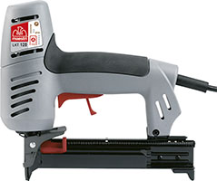 Utilizza punti FOREST 108-110-112-114-116-120 e chiodini con testa TG20. Peso Kg.1,4. Ideale per montatori di infissi, profili di porte, ecc. Infligge punti e chiodini anche su legni duri. Corpo in nylon vetro ad alta resistenza. Impugnatura in gomma. Caricamento posteriore con spingipunti incorporato. Capacit? del caricatore mm.130.