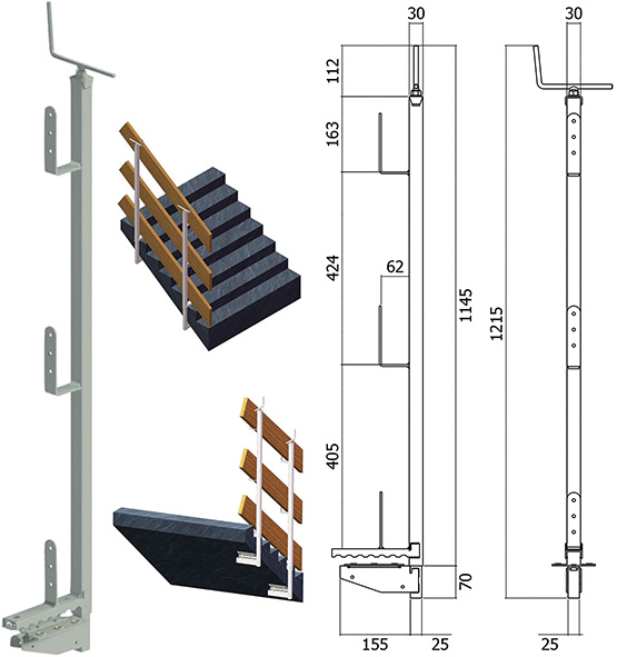 Protezione provvisoria per garantire la sicurezza dei lavoratori in quota, contro le cadute in cantieri edili, scale, balconi, terrazzi e coperture con pendenze non superiori a 10?. Costruito secondo le norme vigenti. Certificato ISPESL - INAIL N? DTS-XI/02/08/PPP del 22 Dicembre 2008. Classe A. EN 13374.