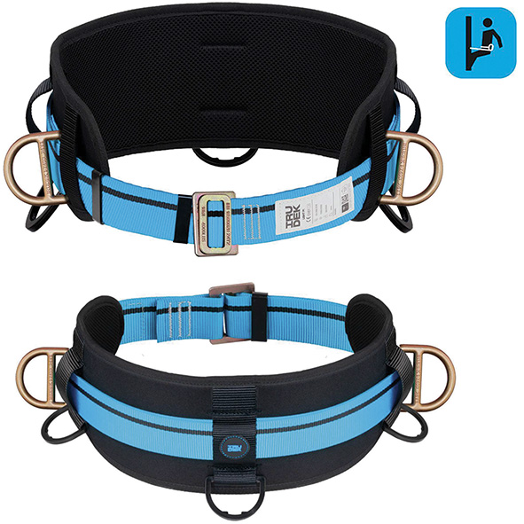 Norma EN358. CE 0161. Cintura di posizionamento con 2 anelli metallici a D laterali per il posizionamento, 3 anelli portastrumenti in plastica. Fascia lombare con imbottitura. Componenti in acciaio tropicalizzato. Regolabile. Fasce in poliestere larghezza mm.45. Capacit? di carico kg.140. Da utilizzare esclusivamente per il posizionamento: NON COME SISTENA ANTICADUTA.