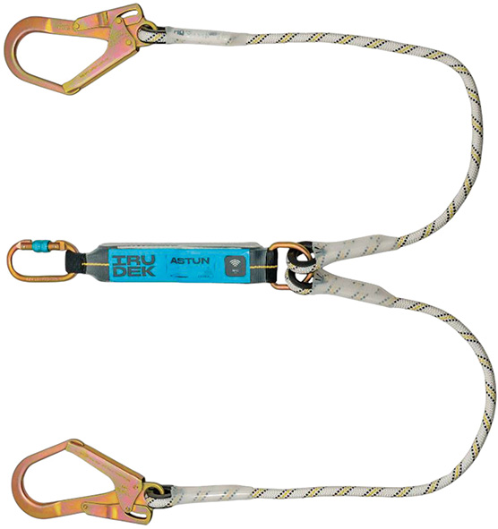 Norma EN355 EN362 VG11.063:2014. Assorbitore di energia con doppia corda semistatica in poliammide d.mm.11. Dotato di 1 moschettone 981 (apertura mm.18) all'estremit? dell'assorbitore e 2 moschettoni 39 (apertura mm.50) alle 2 estremit? della corda. Distanza massima di arresto mt.1, da sommare alla lunghezza totale del sistema cm.180. Resistenza statica 25kN. Capacit? di carico kg.140.