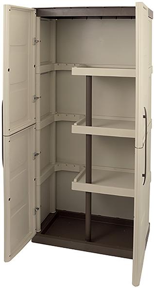 4 ripiani altezza fissa + portascope. In robusto polipropilene antiurto, resistente al freddo, alle intemperie, agli oli e ai solventi. Sistema anti-usura con cerniere in acciaio, chiusura a scatto. Maniglie verticali per una comoda presa. Semplice sistema di montaggio. Prodotto italiano ecosostenibile.