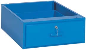 Per banchi lavoro monoblocco. Sono predisposte per essere applicate, mediante bulloni, al telaio perimetrale preforato, posto sotto il piano di lavoro. I cassetti dotati di serratura, scorrono su guide con cuscinetti che garantiscono una portata di Kg.30.