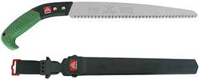 Denti passo mm.4. Con fodero. La lama rettificata concava e i denti temprati ad impulsi velocizzano il taglio e si mantengono affilati pi? a lungo. Particolarmente adatti per il taglio sotto l'altezza della spalla. Manico rivestito in gomma per una presa sicura.