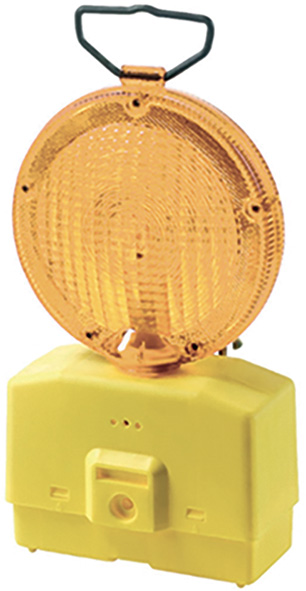 Lampeggiante stradale LED con luce gialla. Lente d.mm.180. In policarbonato resistente agli urti, UV e condizioni atmosferiche. IP44. Munito di diffusore per una alta visibilit? del flash sia di giorno che di notte. Interruttore. Staffa di fissaggio regolabile. Alimentazione con 2 batterie tipo 4R25-6V (non incluse).