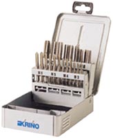 Astuccio di metallo. Assortimento completo di: 21 pz. maschi a mano in serie di 3 pezzi d.M3-M4-M5-M6-M8-M10-M12.