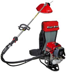 Con zaino. Motore ecologico Kawasaki 2 tempi. A norma Euro 2. Marmitta catalitica. Carburatore a membrane con primer. Accensione elettronica. Avviamento a strappo autoavvolgente. Asta d.mm.27 Made in Italy. Impugnatura a delta. Doppio sistema antivibrante. Coppia conica 4 cuscinetti (ricambio ns.cod.666943). Forniti in scatola montati e con testina 2 fili batti e vai Flash rapid. Peso kg.12.