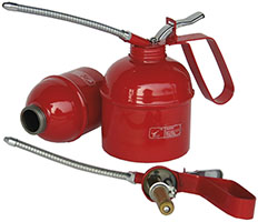 Oliatori a pressione in acciaio verniciato. Canna flessibile. Pompa ottone.